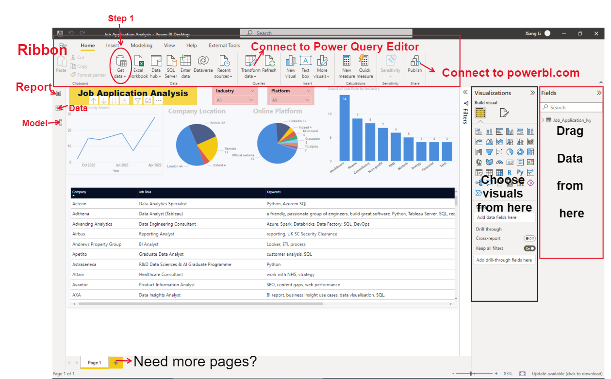 🤗 So how does it work? Power BI Desktop has two main parts, the main interface (including report, data and model three layers) is for data modelling and visualisation. For the data transformation purpose, Power Query Editor support this part.